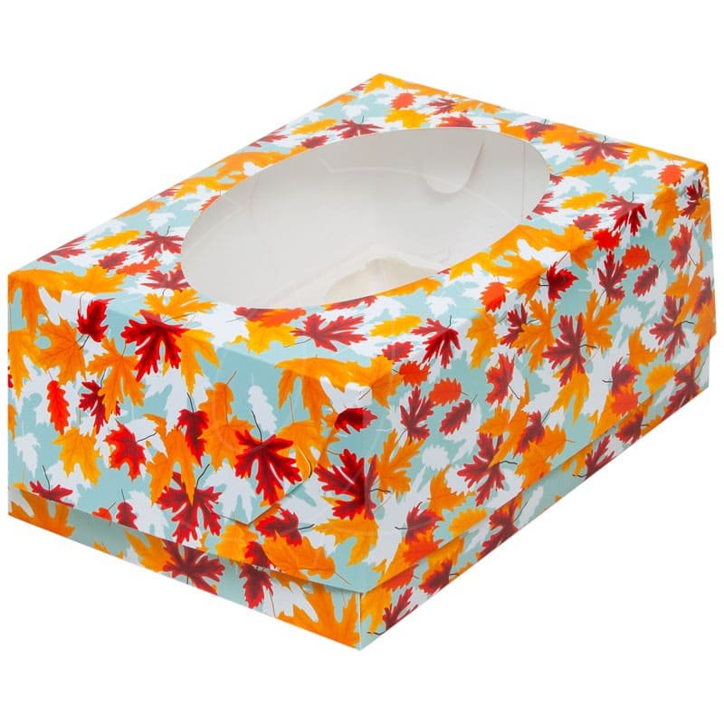 Доставка Коробка на 6 капкейков с окном "Осенний листопад" 23,5х16х10 см из магазина в вашем городе: