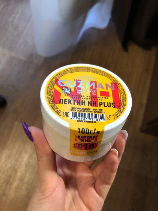 Прекрасно зарекомендовал себя в работе. Не комкается, четко смешивается с сахаром любого помола (и с мелким, и с крупным). Замечательно расходится в смеси. Не горчит, не имеет посторонних привкусов, запахов, которыми грешат некоторые марки пектинов. Пектин NH - это такой желирующий агент, без которого приготовление определенных десертов будет если не невозможно полностью, то довольно проблематичным, и на выходе вы можете получить совершенно не ту структуру, которую хотели. Поэтому пектин NH безусловно должен быть в арсенале любого кондитера. И пектин NH должен быть хорошей, проверенной фирмы, Гузман как раз один из таких.