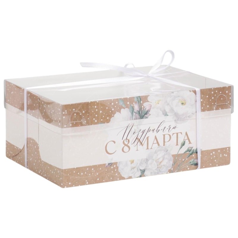 Коробка на 6 капкейков с окном "С 8 марта" 23x16x10 см