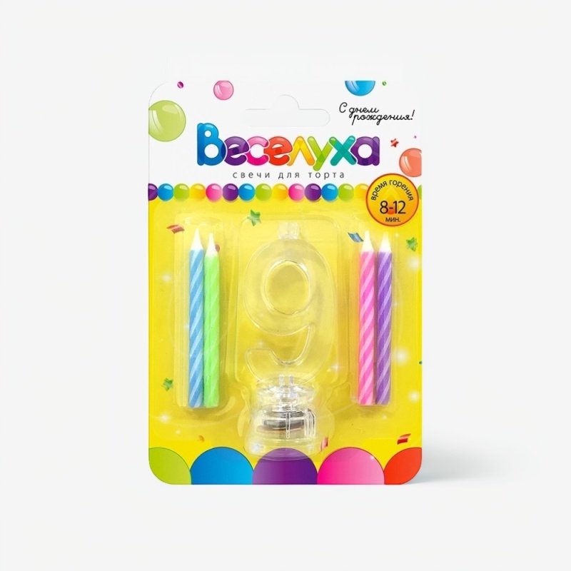 Доставка Набор тортовых классических свечей с мигающим держателем Цифра "9" из магазина в вашем городе: