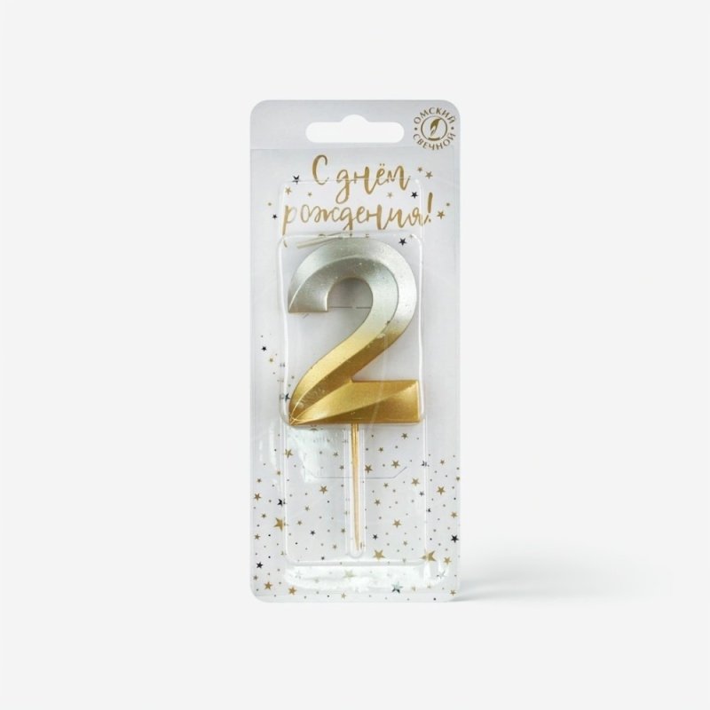 Доставка Свеча декоративная Цифра "2" Золото-Серебро из магазина в вашем городе: